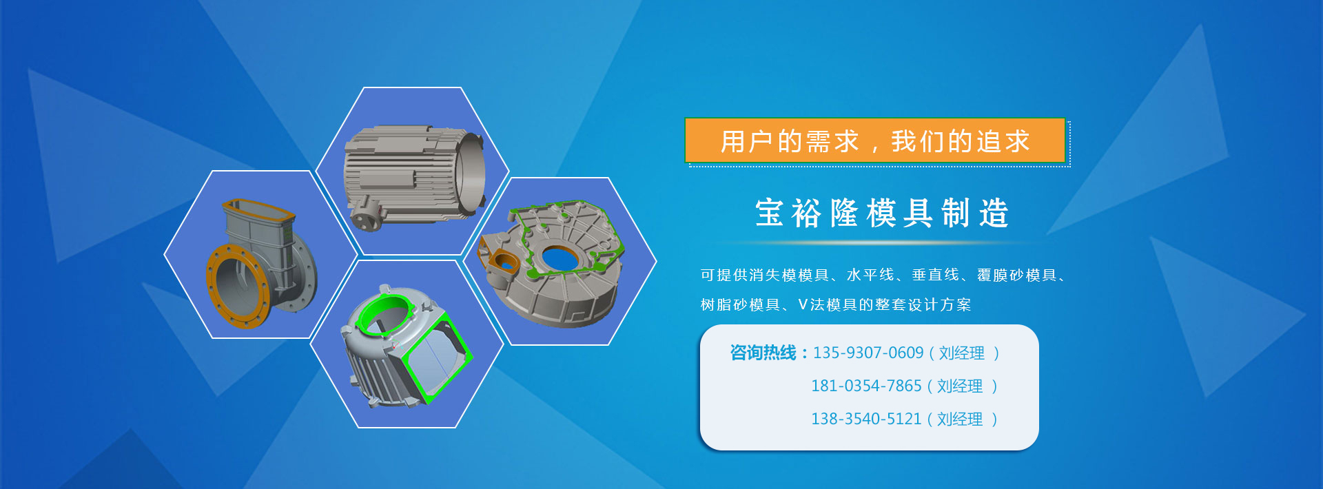 山西寶裕隆模具制造有限公司,創于1998年,位于山西省晉中市平遙縣南政鄉里村,是一家從事消失模、垂直線、覆膜砂、水平線、樹脂砂等鑄造模具企業。我們對于公司各部門人員嚴格要求:要求認真。我公司將產品質量及工作效率放在前面,以可持續發展為宗旨......